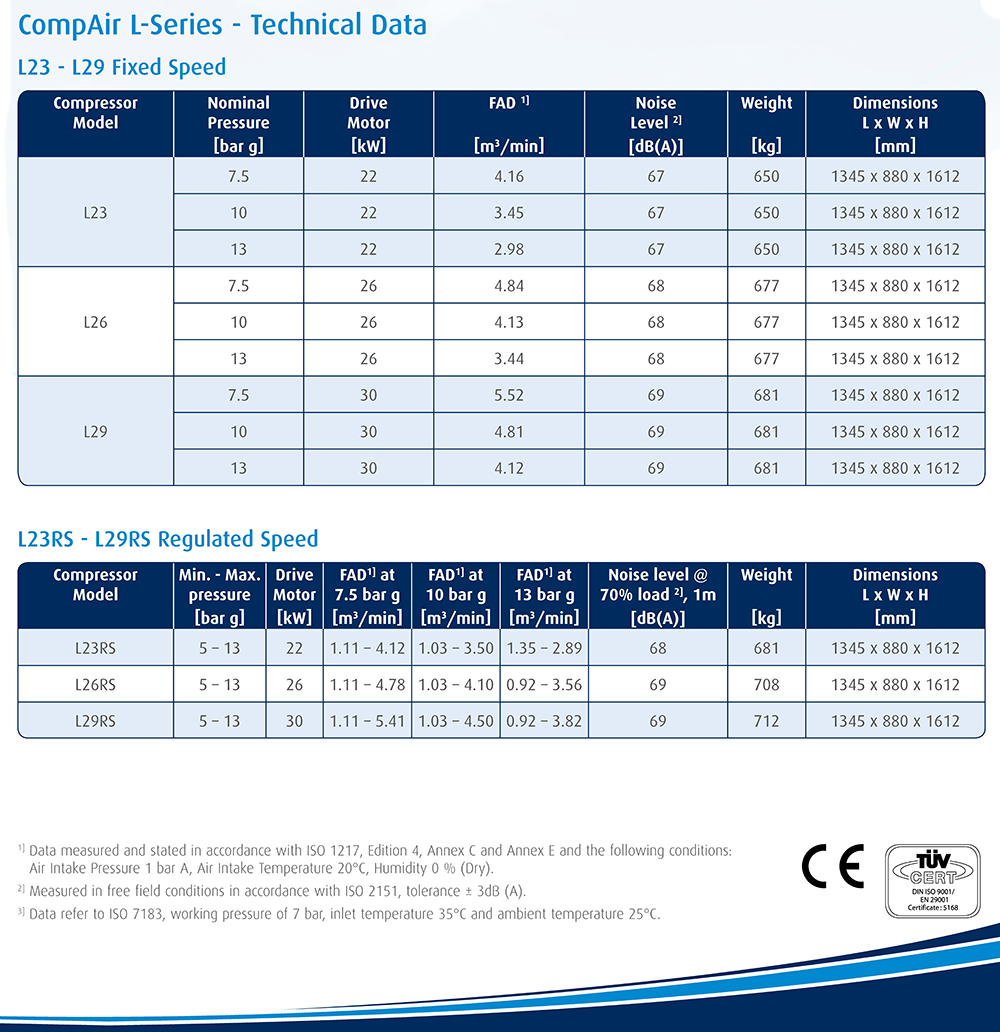 Well known in the industry for quality and reliability CompAir continuously develops the L-Series achieving cutting edge performance and efficiency.